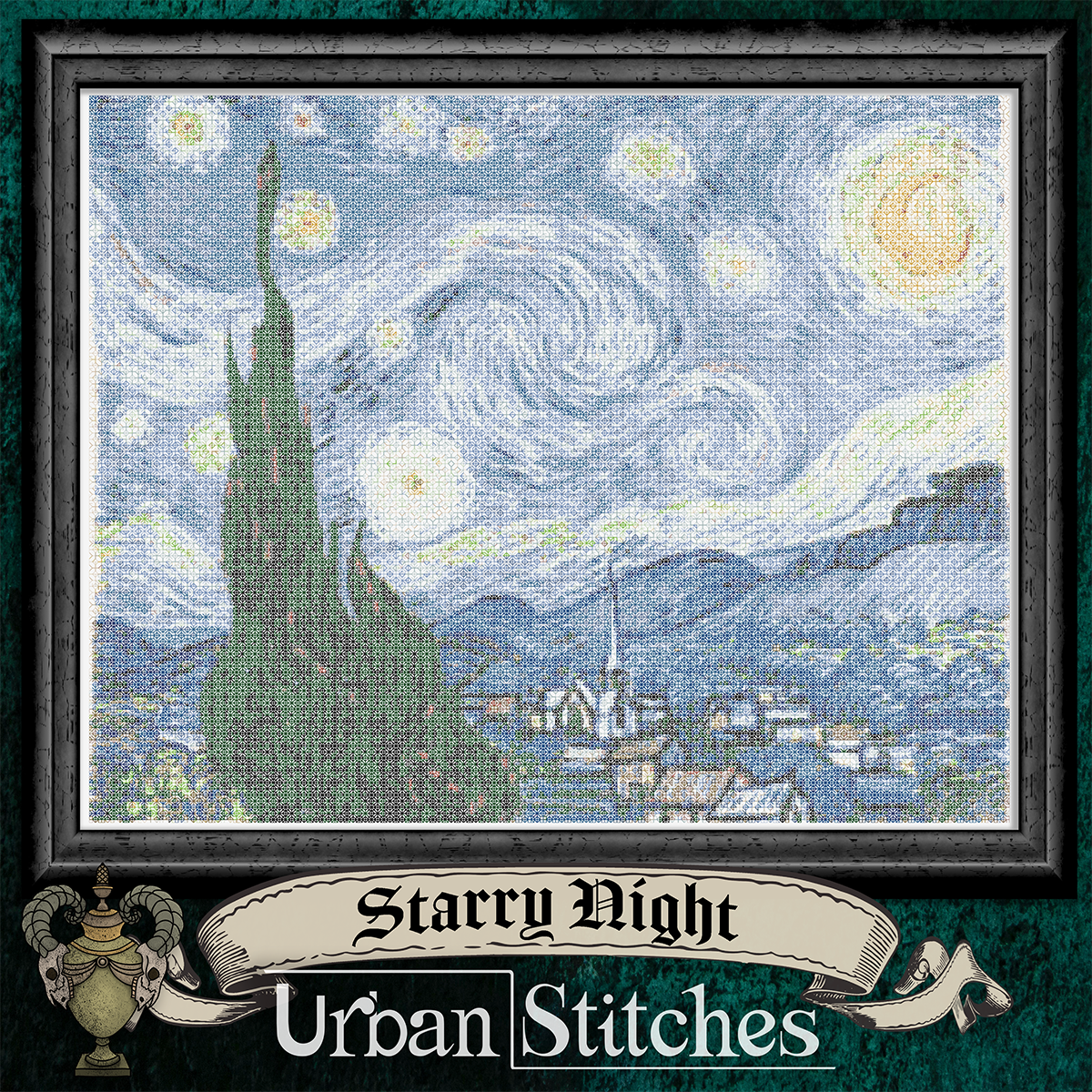 Starry Night (full coverage & colour) Blackwork Stitchalong